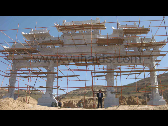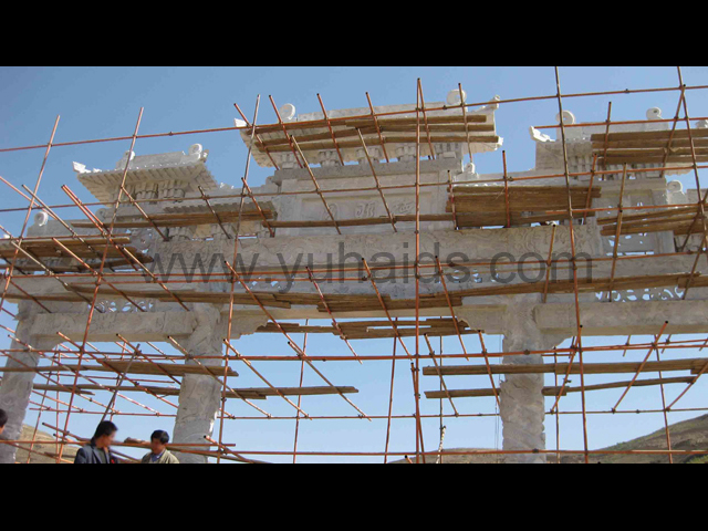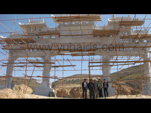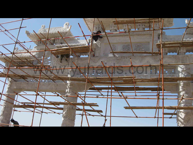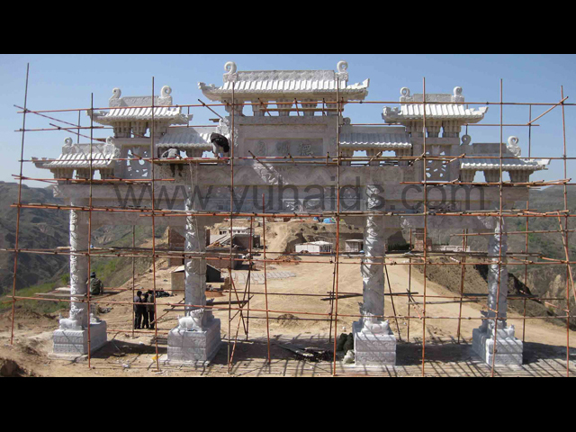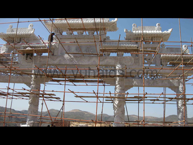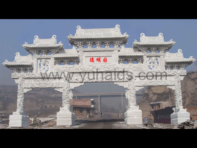 這是南京德明園大理石石雕牌坊應(yīng)用案例。整個牌坊以大理石雕刻制作而成,主要以龍紋作為裝飾圖案,包括柱體和牌坊其他部件,大都可以看到龍的形態(tài)。