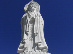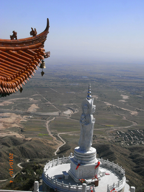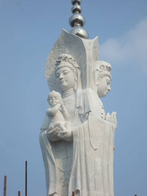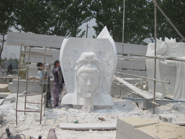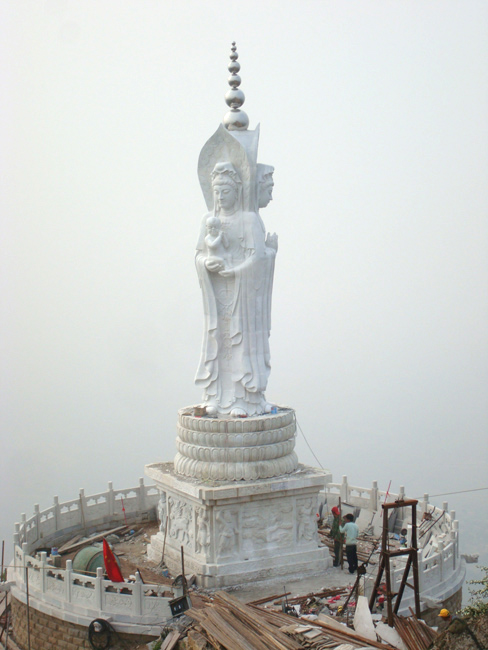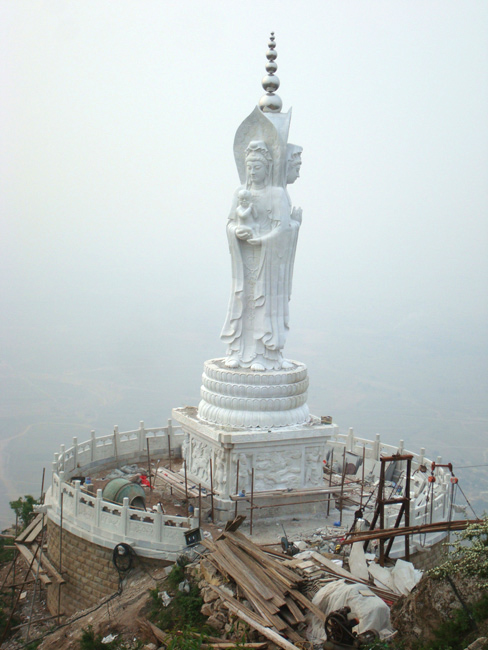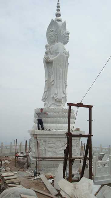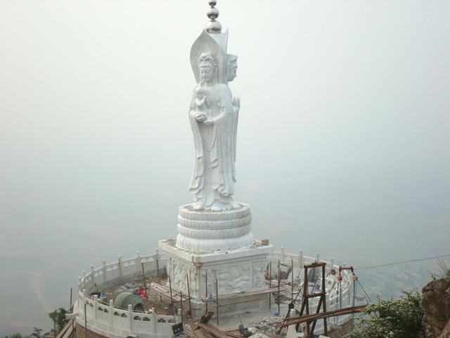 山西省懷仁縣清涼山2010安裝漢白玉雕塑三面觀音雕塑。底座三米八高,觀音十二米高,總高15.8米,材質(zhì)用北京房山漢白玉由漢白玉雕刻,三個(gè)方向分別是送子觀音,凈水觀音,如意觀音三個(gè)面孔,面向登山道路的一面是送子觀音的形象。