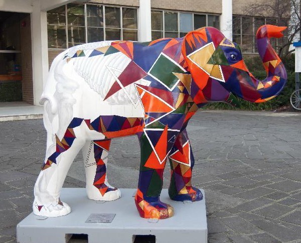 室內(nèi)售樓款創(chuàng)意玻璃鋼彩繪大象雕塑