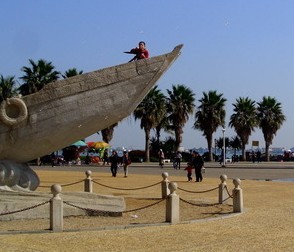 筆者在霞山漁港公園看到,一群貪玩的小孩子來到公園廣場,攀爬上漁港公園主題雕塑“海之戀”,并在“船頭”高處蹦蹦跳跳,在雕塑船上任意跑動。廣場上是硬底地面,雕塑石船的船頭離地面約有三米高,雕塑石船上周邊沒有護(hù)欄,小孩在上面跑動,很容易跌落。